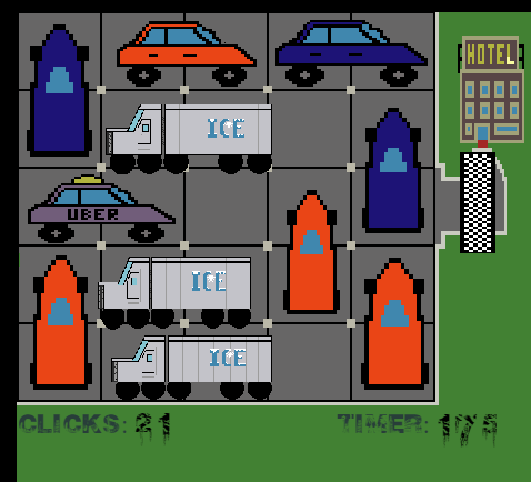 2D sliding puzzle game with a timer to determine score. Play as an uber driver that needs to drop off your passengers to the hotel as quickly as possible! Based on one of my favorite childhood boardgames, Rush Hour.